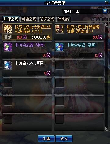 玩家用不同数量的【眩惑邪念体】在NPC【占卜师希莫娜】这里兑换道具。包括(以鬼剑士为例子):