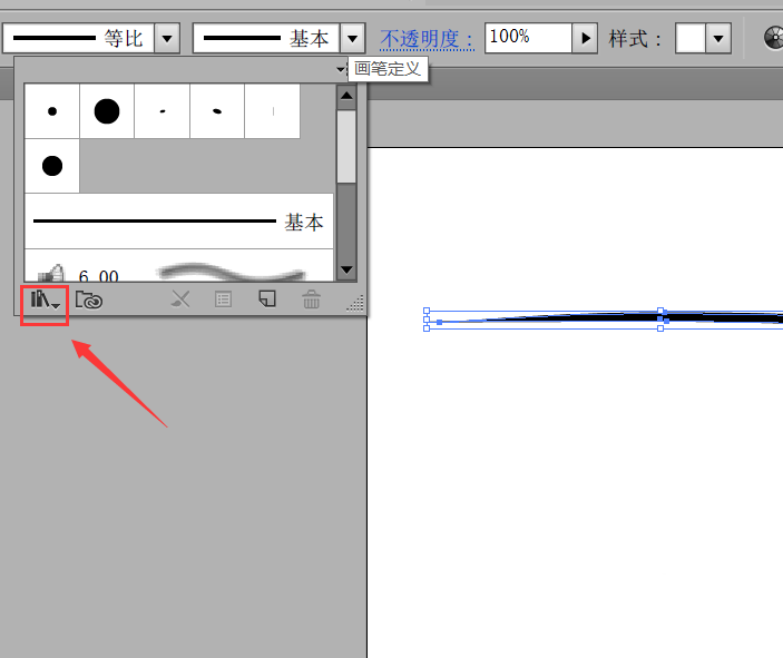 然后再找到画笔定义选项里的画笔库菜单,如图所示: