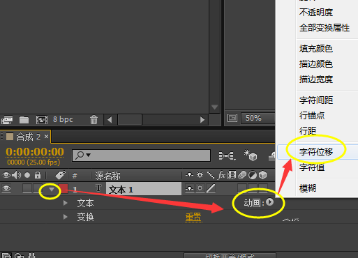 最后我们移动关键帧——改变一下字符位移的数值;按空格预览效果;