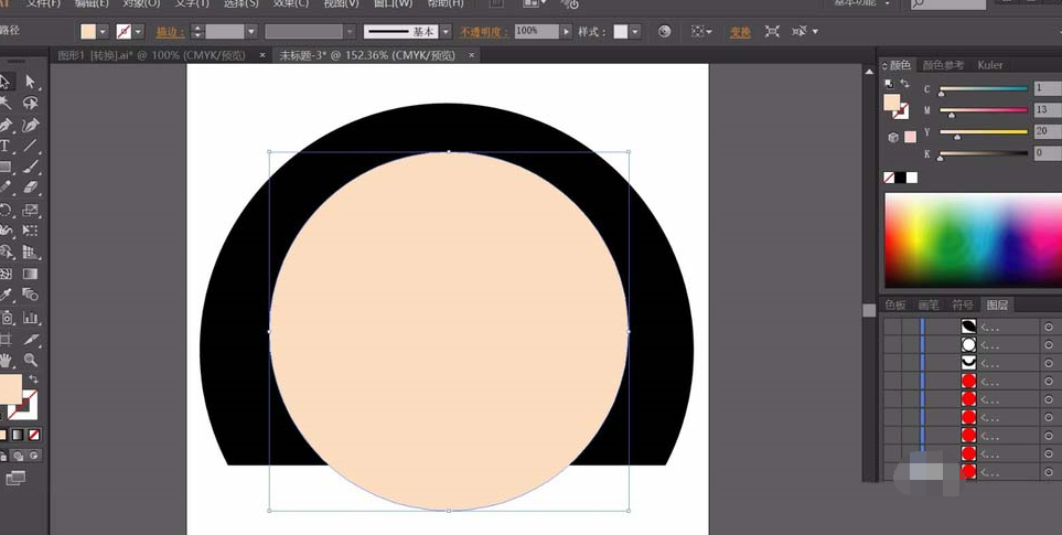 用圆形工具画出女孩头发与脸部的基本轮廓,脸蛋用正圆形,头发用矩形截取一下,让脸蛋在底部呈现出来。