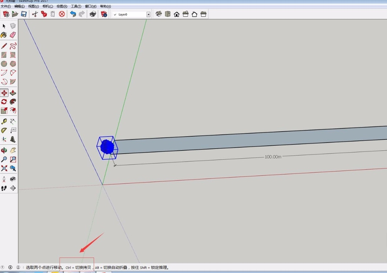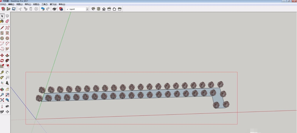 再使用尺寸工具或者卷尺工具计量道路的边长,计算道路一边所需的树的总量,比如20颗树。