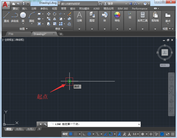 1、选取绘制直线工具后,找到需要绘制角度的起点;