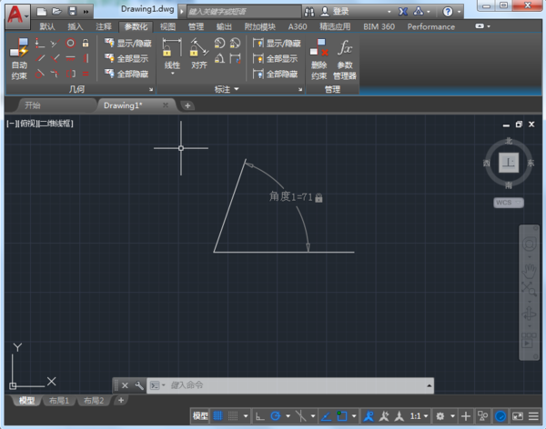 3、按键盘Tab建,输入需要的角度值(在这里我选择输入71°);