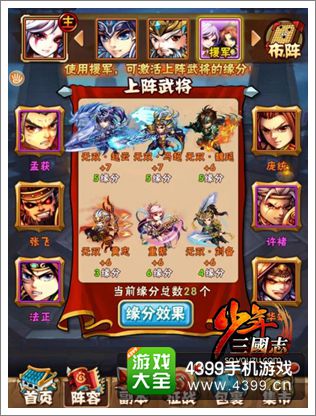 35~50级这个阶段主要在于根据你的阵容去开缘(尽量攒齐你的6个援军,到55级后就可以全上援军了)至于开缘的关键就是先满足你阵容第一核心的缘分,先去凑齐他的缘分,然后再去配2号核心的人物缘,以此类推~当然假如援军里有可以激活你上阵多个武将的缘分,可以优先考虑。