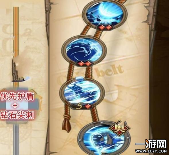 第二回合护盾+嘲讽,消耗4魂玉,有护盾,有了第一回合的尖刺,还有了嘲讽。可保护队友不受到致命伤害,同时乔兹自身护盾起来了,钻石尖刺也足够了,这个时间段才是嘲讽的最佳时期,最后奥义收尾(技能搭配不唯一,可灵活调整)。