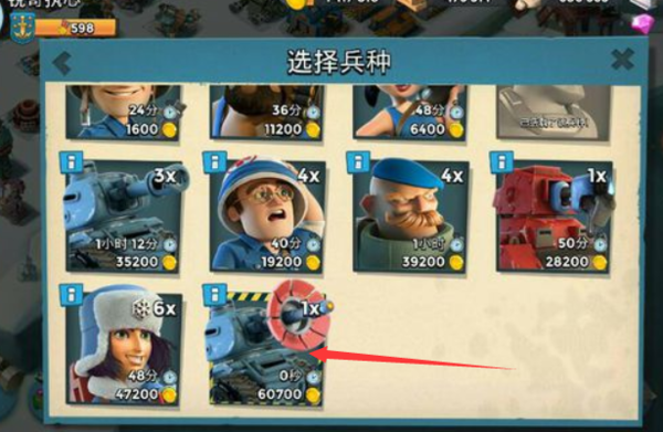 2、然后再点击登陆艇的加号,如果只是登陆艇上面有其他兵种的话,你点击更换兵种,然后再点击激光坦克就可以了,装载激光坦克不需要时间。