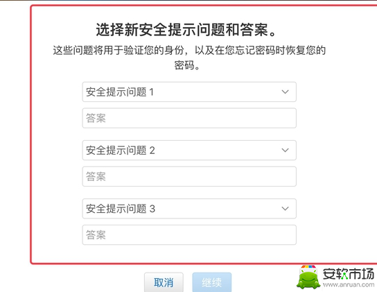 8、点击【继续】,完成验证之后就可以重置安全问题了。