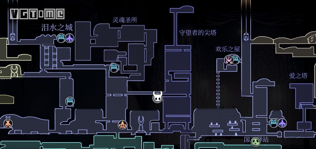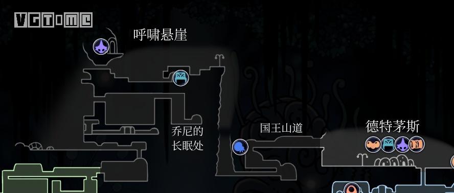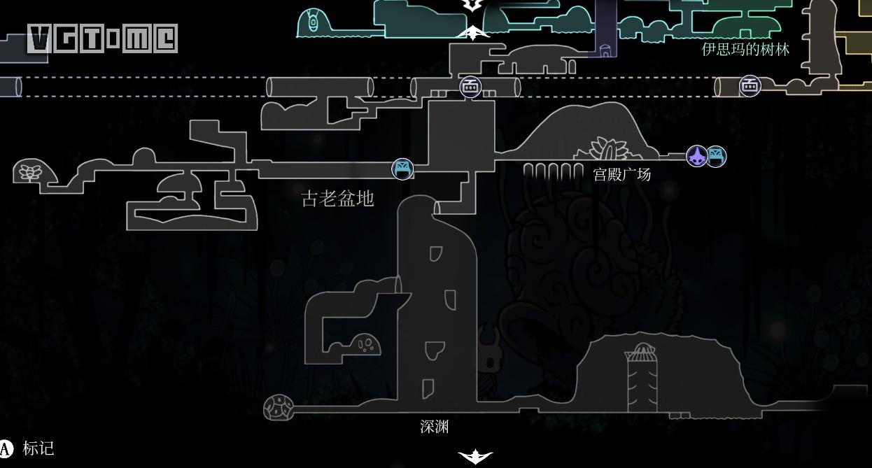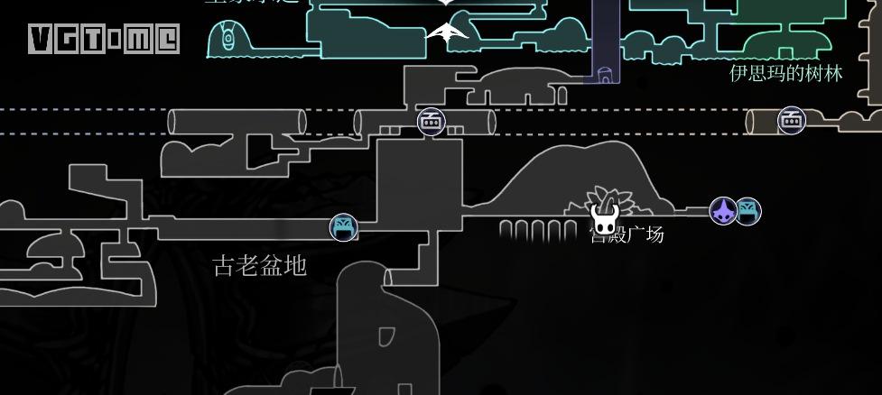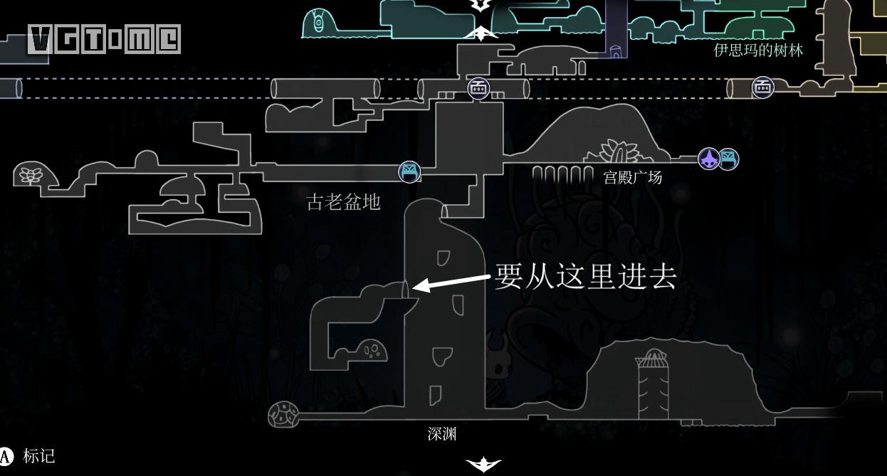 获得能力:蛾翼披风升级→暗影披风(冲刺中有无敌时间,在底部右侧尽头,雕像受众的黑水杯中泡一会儿即可获得)、