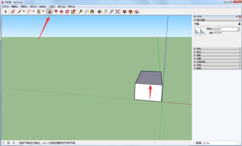 点击上方菜单栏上面的锥拉工具,鼠标放在模型上,按住,向上拉,就能绘制出矩形了