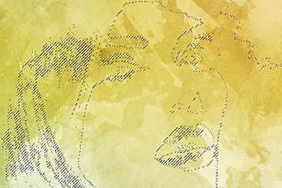 3.回到你的人物图层,按快捷键CRLT+ALT+2进行高光选择。然后显示并选择你的水彩图层。这时你会发现你的照片已经隐约出现在在水彩图层上了。