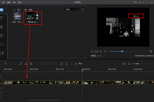 1、首先需要先进入到视频编辑王的软件中,首先需要先进行账号的登录,否则将会出现不能正常使用的情况,大家只需要打开QQ或微信进行扫一扫即可轻松登录;在登录成功后,点击导入选项将想要清除水印的视频进行导入,接着将会在素材库中出现,将视频拖动到下方的时间线中,即可完成去水印的准备工作,如下图所示: