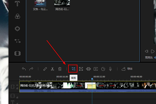 2、在下方的时间线中点击刚刚导入的视频文件,接着在上方的功能栏中找到“裁剪”选项,此功能就可以帮助大家轻松去除视频中的水印,如下图所示: