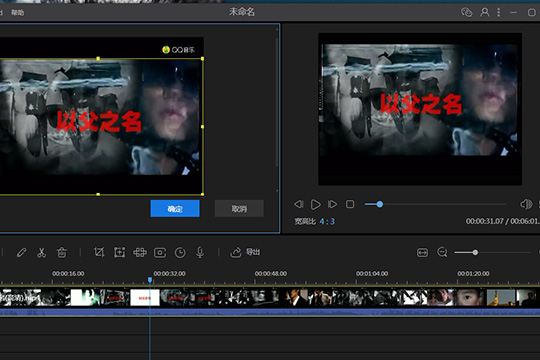 3、用户在进行操作的时候可以先在右边的播放窗口进行播放,毕竟很多视频的水印不会出现在片头部分,大家也可以直接在时间线中进行拖动,接着回到刚刚裁剪的内容,在进入此功能后,将会出现黄色的框,框中的内容就是最终保存的视频,最后点击“确定”即可,如下图所示: