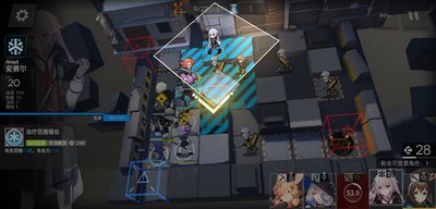 接着撤回所有的先锋,并将下路的狙击换为术士,来应对左路的两个盾兵,上路补一个狙击,并且开启各种技能。
