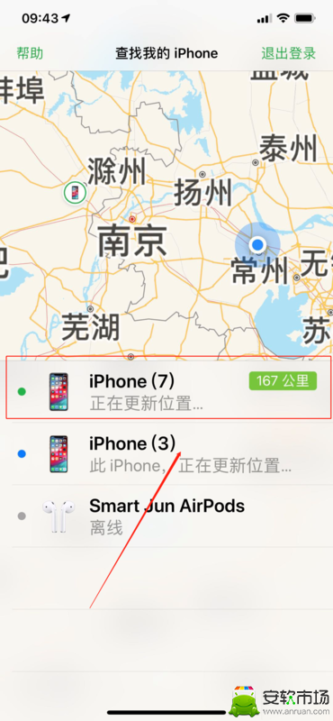 3、登录之后就可以Apple ID下连接的所有设备了,丢失的iphone X也会在屏幕上显示出来;