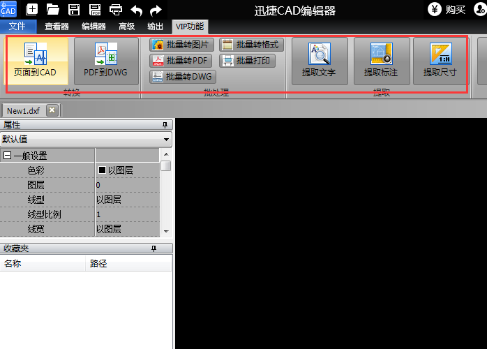 迅捷CAD编辑器激活成功之后,就能点击VIP功能面板,使用VIP功能菜单中的所有工具命令,实现更多的操作。