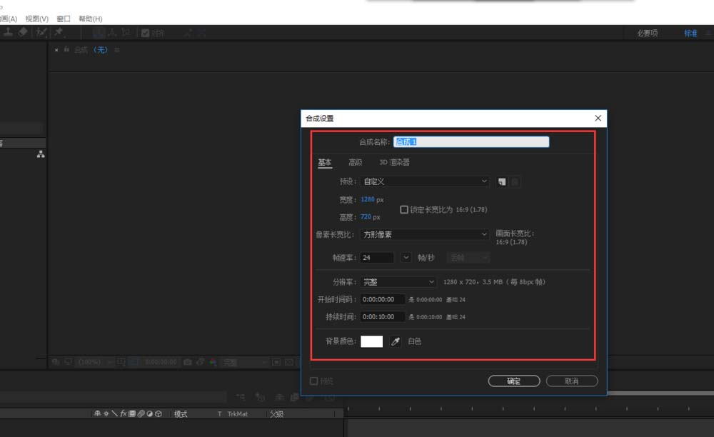 我们需要先打开AE软件,单击新建合成按钮,打开合成设置窗口,选择设置一个合成进行创建。
