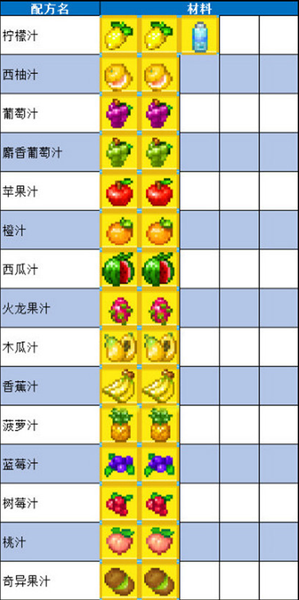 夏日水上乐园物语游戏中一共有138个料理食谱,每一种食谱需要不通的食材合成,比如柠檬汁需要两个柠檬加一瓶水合成,西瓜汁需要两个西瓜合成。