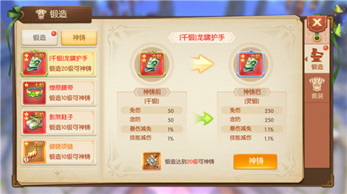 而之后继续对装备进行锻造到20级,可以再次神铸升为灵锻,战力将又上一个太阶~这次则需要消耗圣锻灵锤才可进行,这个材料比较难获得,建议各位到时候看看能否通过交易市场或者公会成员交谈进行交易哦~