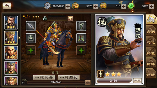 武将养成:拥有了武将之后,要通过各种各样的方式来培养物将,从而提升武将的战斗力。例如武将升级,武将升星,技能升级,羁绊激活,装配气运,晋升官职等等。