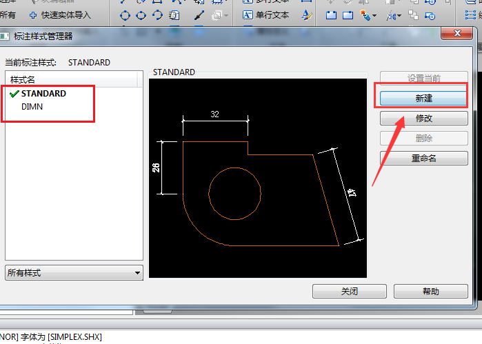 最后在标注样式管理器中选择对应的标注样式,关闭窗口。接下来用标注工具时就会采用所选择的标注样式了。
