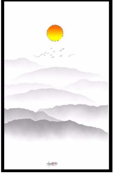 移动圆形选区向下5个像素左右,再进行一个羽化的操作,把太阳的下半部删除一些,从而做出了一个渐隐的效果。也是一轮红日即将升起的感觉。