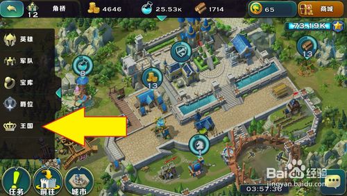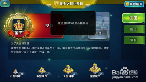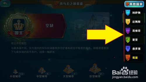 城堡到达15级后,在领地或地图上点击左边的菜单键,再选择【王国】按钮进行。