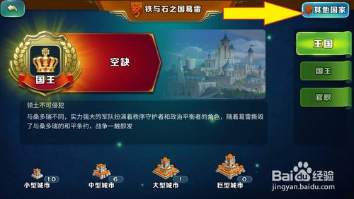 进入王国界面后,就可以看见该国占领了多少城市。现在点击右上角的【其他国家】打开他。
