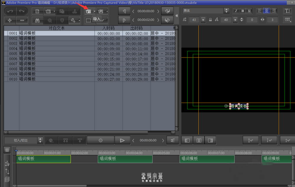 双击字幕模板,会弹出一个窗口,点击导入图标,如图,
