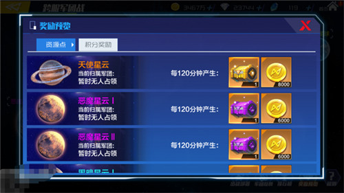 3、军团开启期间,玩家进入军团战页面,可选择6个资源星球中的一个进入,击败其他军团的玩家即可获得大量积分。
