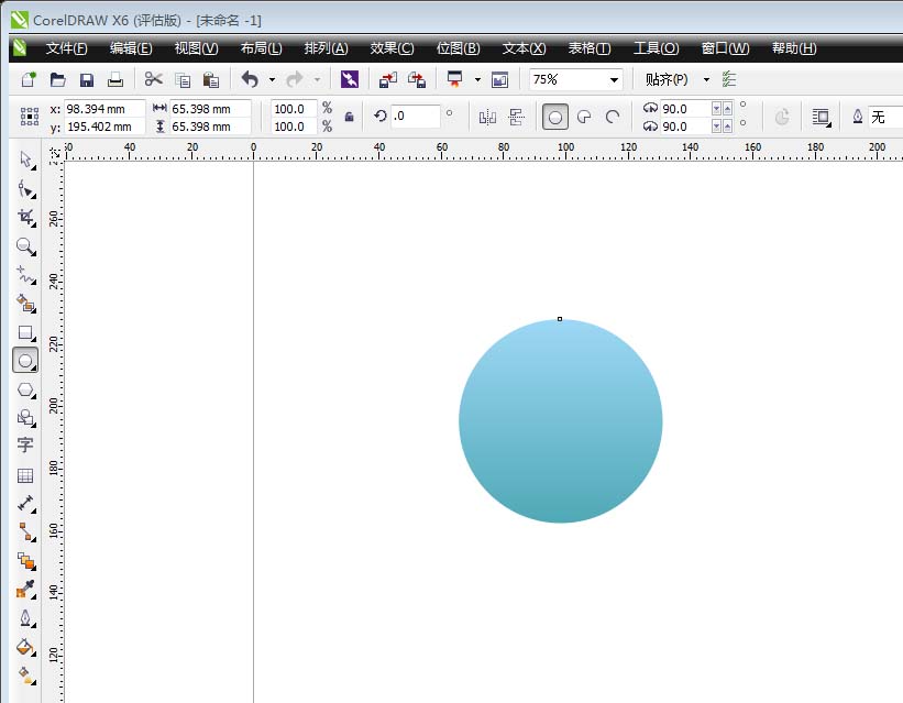 填充该圆形的颜色,使用“填充工具”中的“渐变填充”按钮。设定完颜色后将轮廓设置为无即可。