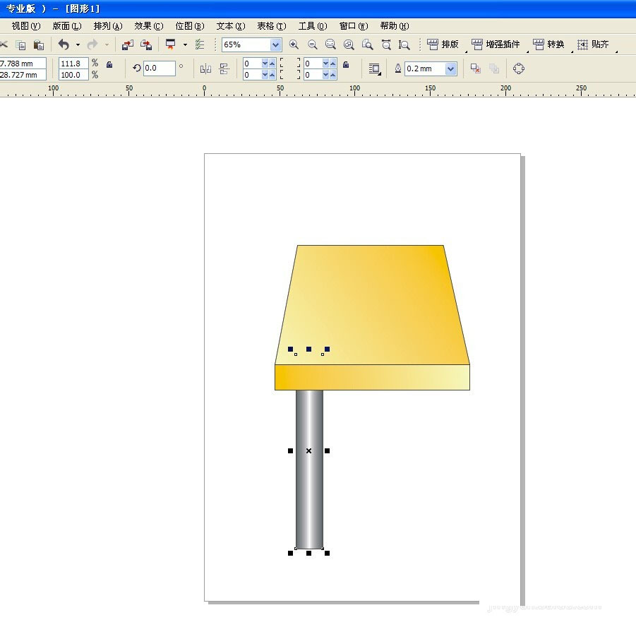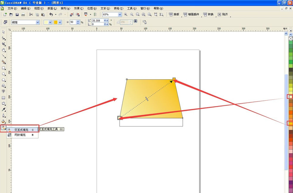 选择交互式填充工具,拉出一个线性渐变,颜色从深黄到浅黄。