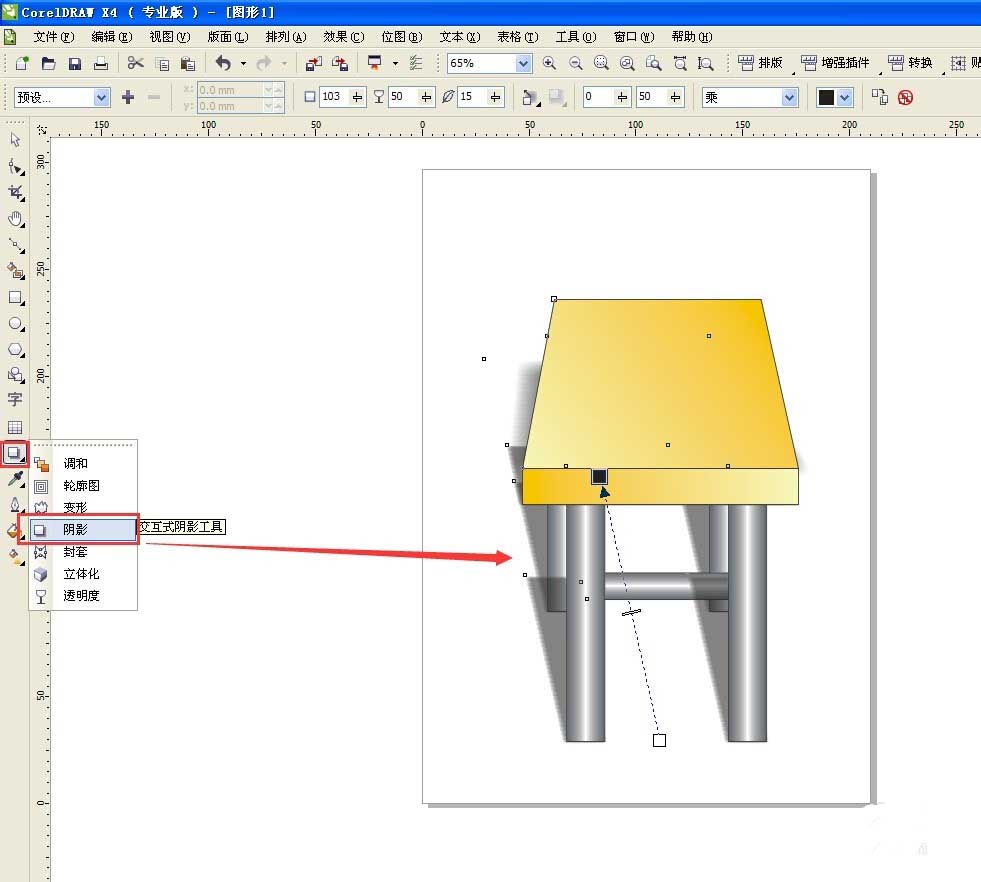 最后用交互式阴影工具,从右下到左上拖出一个阴影,就完成了。