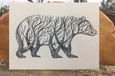 首先将你的石头照片导入到PS中,紧接着将要刻的图画也导入到中。(刻画建议是黑白图片且图案的轮廓要非常的鲜明,这样刻上去的效果就更逼真)