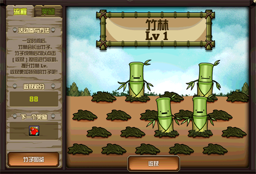 当收获积分达到400、1000、1600、2600时,竹林的等级会提升。