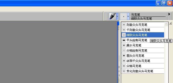 更改画笔的笔触样式,选择细致尖头笔样式的画笔,如下图所示。