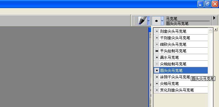 这时还需要更改画笔的笔触样式,选择圆头尖笔样式的画笔,如下图所示。