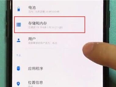 2、在设置选择中,选择【储存和内存】选项,点击打开。