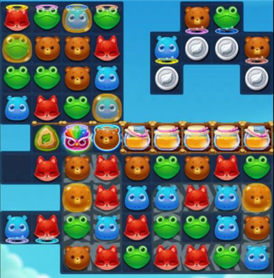 1、重点左上角,交换熊和青蛙,消除三熊。