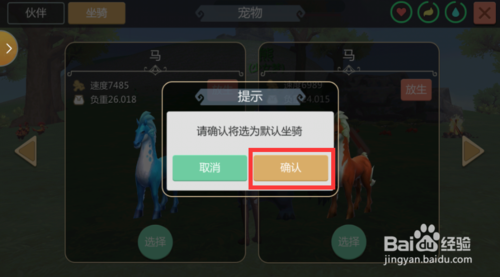 【提示】的小窗口,点击“确定”设为默认坐骑。