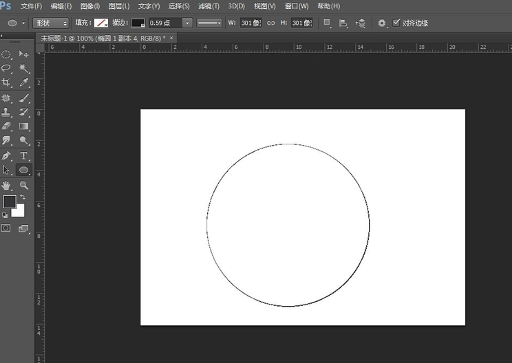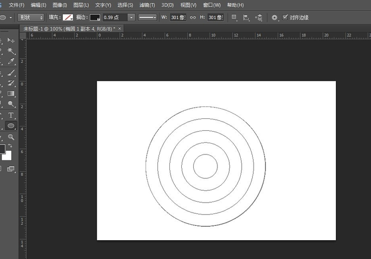 2、按住shift键在画布上画即可画出圆形,可复制多次,想要几圈就复制几圈。