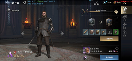 提升军阶同样可提升桑铎的战力。提升军阶需要指挥官装备,领主们通过通关心树试炼、征伐野外首领等方式获取到指挥官装备后,当前军阶下所需的6个装备部位全部穿戴齐全后,即可提升至下一等级军阶。