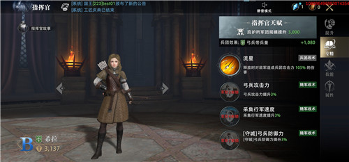 军阶等级247解锁专精弓兵攻击力采集行军速度[守城]弓兵防御力解锁技能不羁的缰绳会心一击驰骋之心