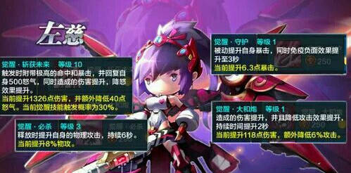 非常霸道的技能,持续时间高达6秒,在配合单前排的情况下,前排只要受到攻击就会回怒或者直接伤害后排。如果前排非常频繁的受到攻击,特别是受到持续性伤害,左慈就会疯狂回怒或者直接输出。需要注意的是这个攻击并不很高,但是频率较高,所以左慈既能对后排造成巨量单发伤害(大招),又能同时造成高频次低伤害(左慈王宫技能也具备此特点)。所以左慈对姜维的压制作用非常明显。3号觉醒技能更是百分比提高物攻,有必要点满。正因为此技能过于霸道,所以只能概率触发且目标随机。