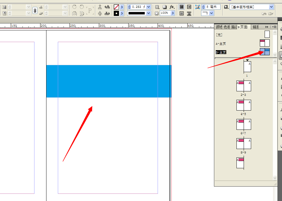 首先打开Indesign,新建10页,找到主页标签,可以看到上面已经有个A-主页了,为了比较好理解我们再新建一个B主页。