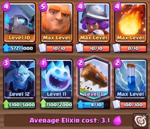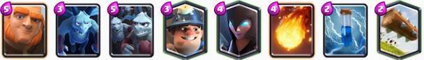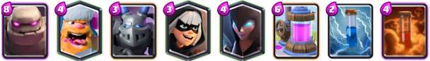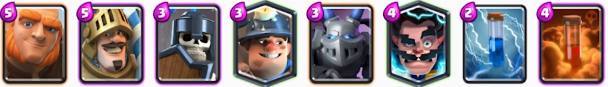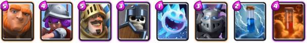 这也是一套相当不错的搭配组合,玩法也很灵活,可以使用矿工气球兵玩消耗流,超级骑士和闪电法师防守,也可以找机会使用超级骑士当肉盾,跟进气球兵强势推进拆塔,喜欢的童鞋可以试玩。