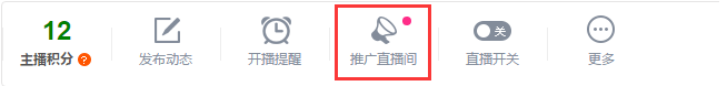 1、开始直播后,可在直播间右上角找到【推广直播间】功能入口,点击打开设置窗口;