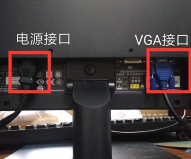 4、电脑显示器的接口,如图,用VGA线一端连接电脑,一边连接主机就可以了,电源线另一头插到家里的插排上;