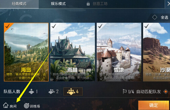 2、进入切换模式界面之后,点击左下角的房间按钮;