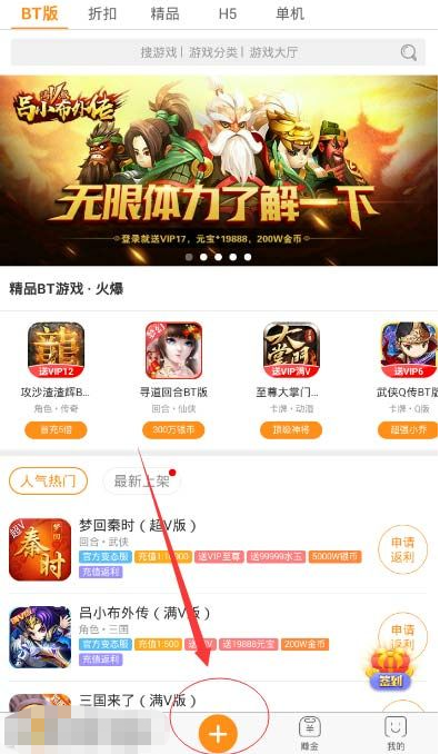 在APP首页界面点击"+"号子页面;
